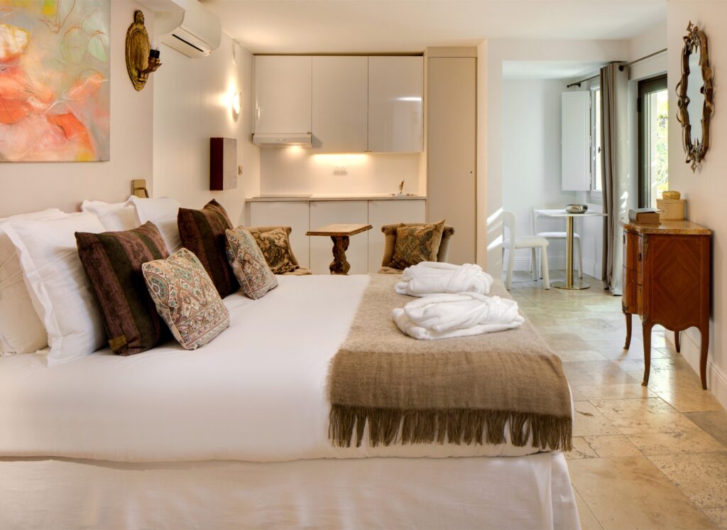 Le Cloître propose une collection très confidentielle de cinq appartements 5 étoiles, offrant de volumes spacieux, un design raffiné et des services haut de gamme. Ces appartements haut de gamme 5 étoiles à Avignon offrent une expérience intimiste et exclusive, idéale pour les voyageurs en quête d’un hébergement 5 étoiles à Avignon, alliant intimité, caractère patrimonial, confort, services et prestations d’exception.