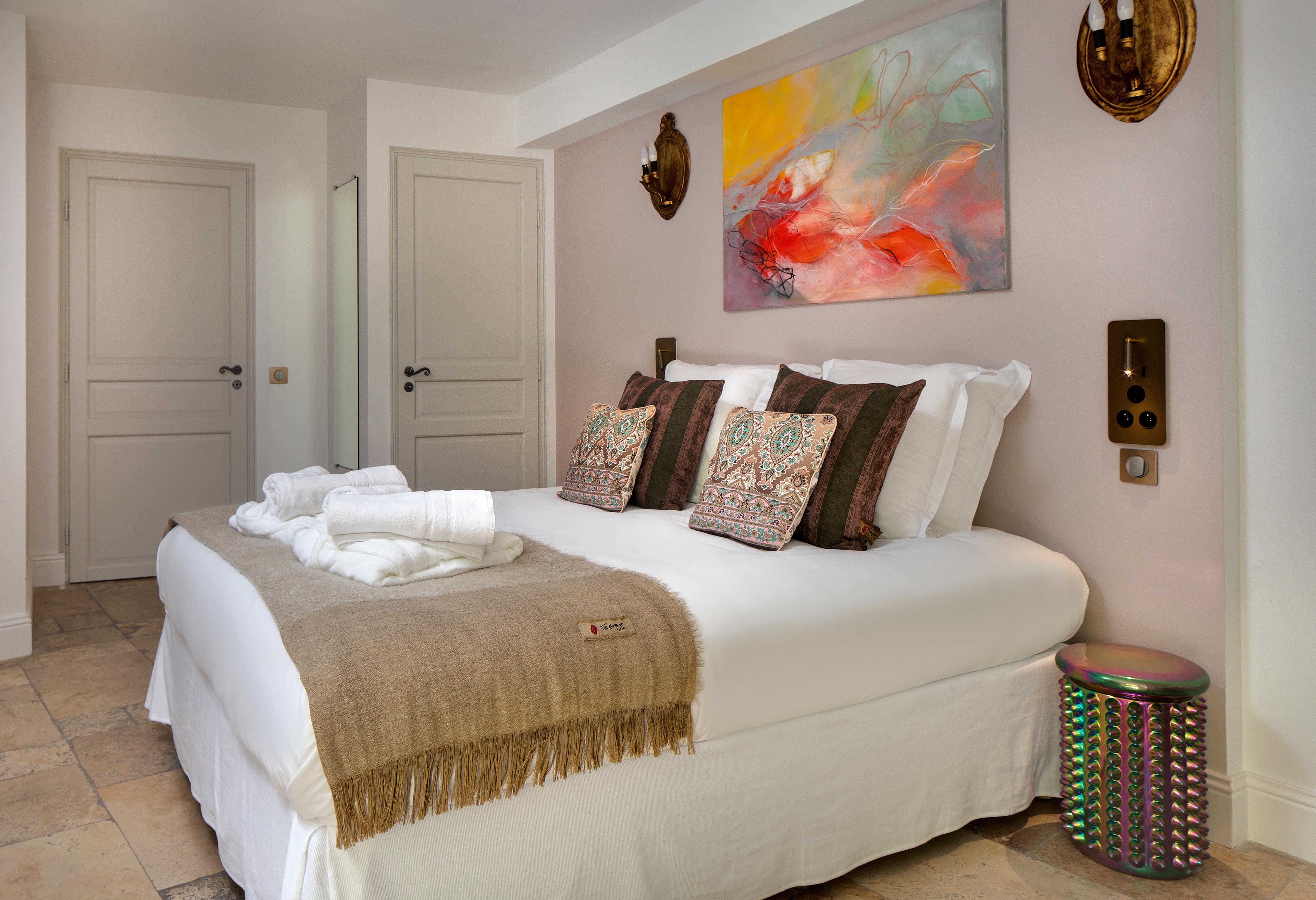 La suite URBAIN V allie élégance et accessibilité. Avec sa terrasse privative, son lit King size, et sa cuisine entièrement équipée, elle offre un cadre moderne et fonctionnel, parfait pour se détendre. Conçue pour accueillir les personnes à mobilité réduite, cette suite propose également un accès direct au jardin méditerranéen, idéal pour un séjour alliant confort et sérénité.