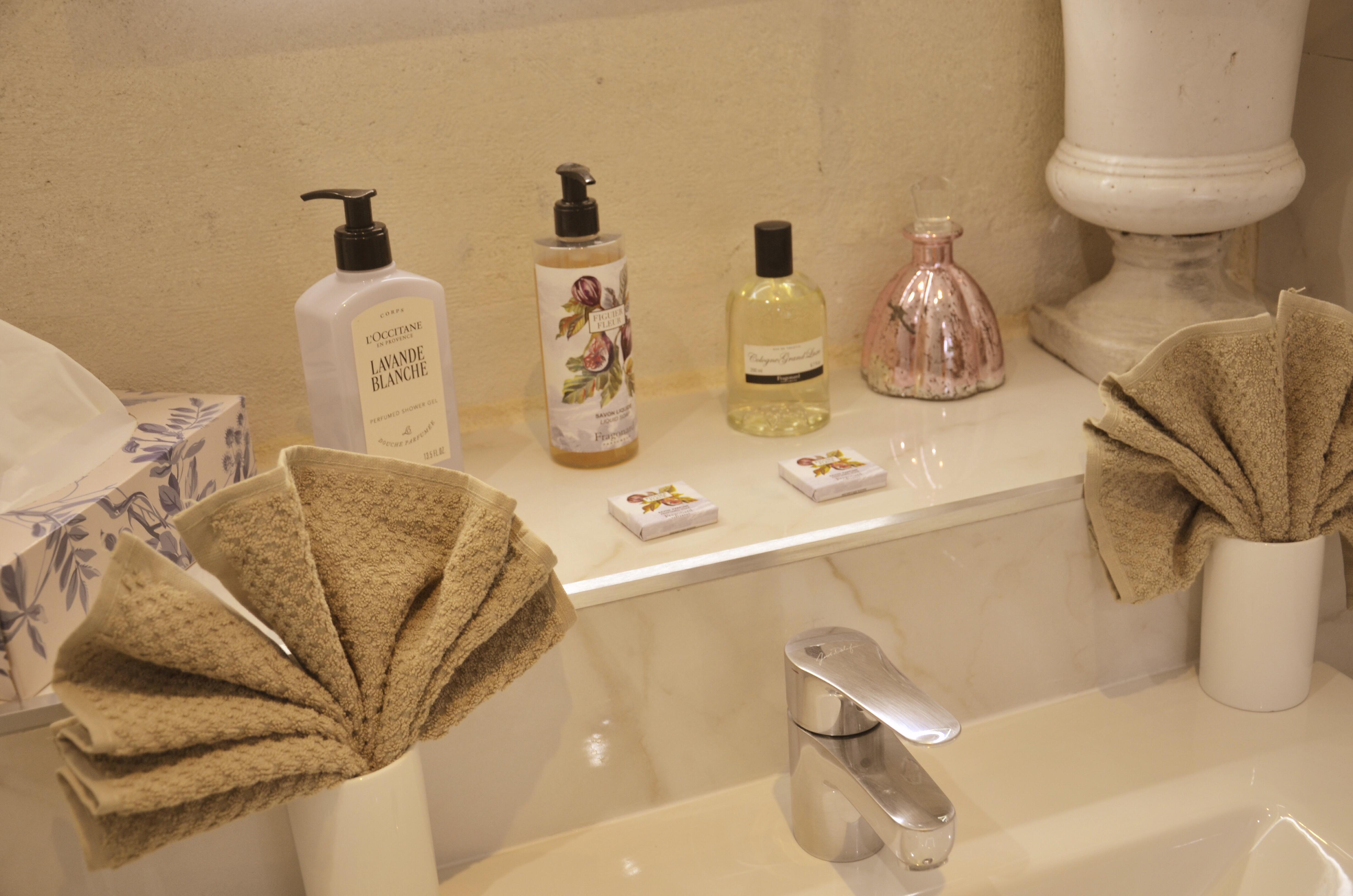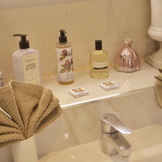 Dans nos chambres et appartements, chaque détail est pensé pour votre confort et votre bien-être. Profitez d’une expérience sensorielle unique avec nos articles de bain haut de gamme signés Fragonard et L’Occitane. Ces marques emblématiques, réputées pour la qualité de leurs ingrédients et leurs senteurs raffinées, transforment chaque instant de votre séjour en un véritable moment de plaisir et de détente.